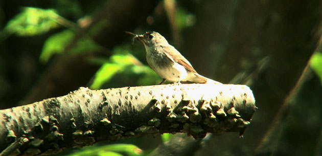 コサメビタキです。何度も飛び回っては、空中の虫を捕まえます。一生懸命餌運びをしていますから、近くで営巣しているのでしょう。