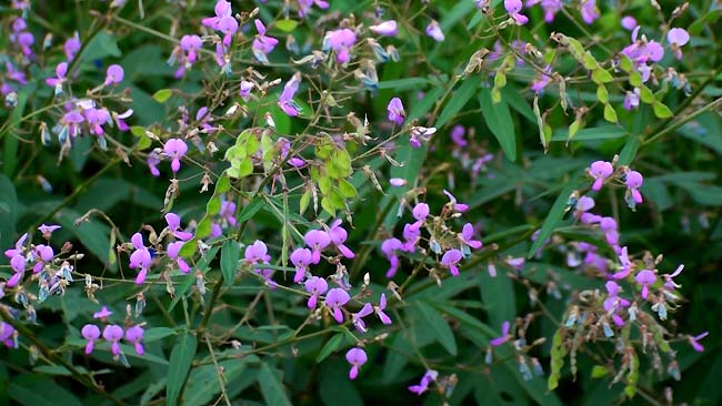 萩は萩でも、ヌスビトハギ(盗人萩)。花は可憐ですが、種は曲者(くせもの)!人の足元、犬の足など、何にでもくっついて離れない。