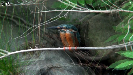 これは、カワセミ3D動画からキャプチャした、ひとコマです。左右の映像が織り込まれたインターレース写真になっているのが、よくわかりますね。12月には、専用メガネなしで観ることができるテレビが売り出されるそうで、楽しみです。