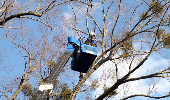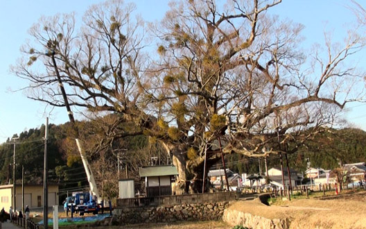 天然記念物である“大ケヤキ”は、ヤドリギの除去作業を受けることになりました。作業は1月5日から始まりました。国の財政事情により約8年周期で行われているそうです。クレーンを使って、次々にヤドリギは除去されていきます。大ケヤキの樹勢維持には欠かせないそうです。