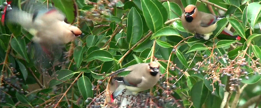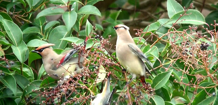 ヒレンジャクがお正月早々野間の大ケヤキにやってきました。昨年やったきたのは3月でしたが、今年は時期の早い訪問です。撮影時には、もっぱら大ケヤキのそばにあるネズミモチの実を食べていました。