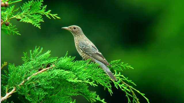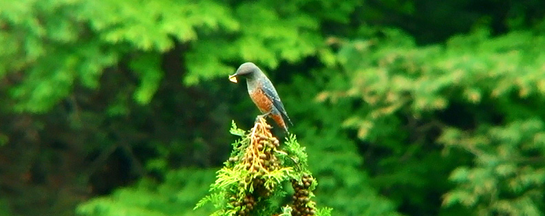 イソヒヨドリのオス親が、餌を運んできました。親鳥と同じくらいの大きさまで成長した