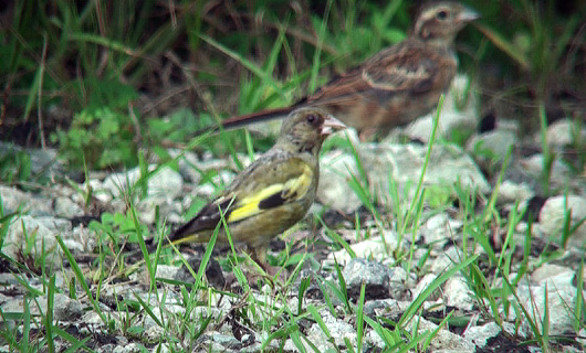 行動ができています。(向こうにいるのはホオジロの幼鳥です。)
