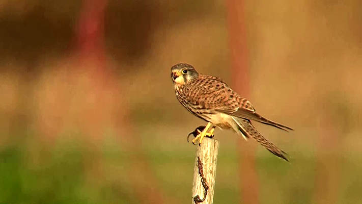 狩りだったのです。獲物を杭の上で食べ始めました。野ネズミです。まわりを警戒し