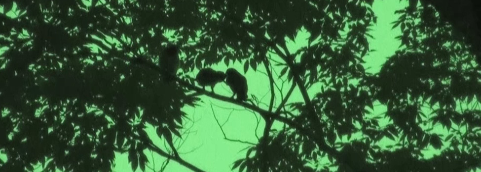 親から餌をもらっていますね。このヒナは、2度続けて餌をもらいました。赤外線での撮影です。