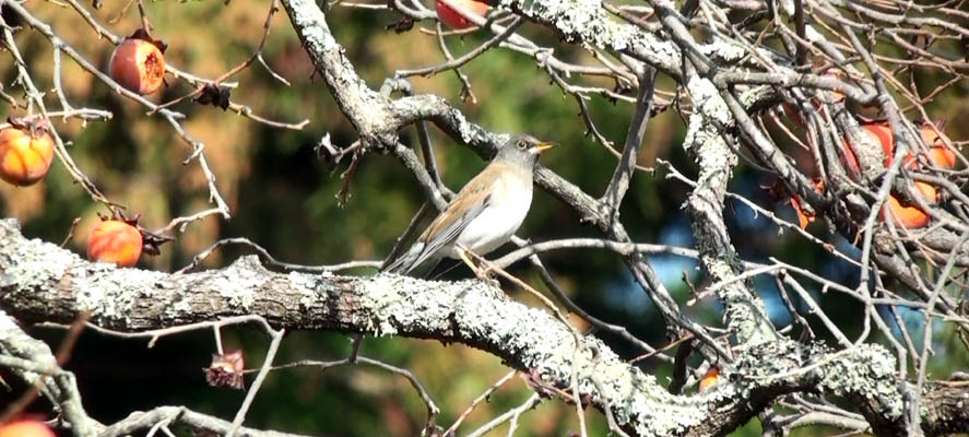 川尻には柿の木がたくさんあり、いつも野鳥でにぎわいます。