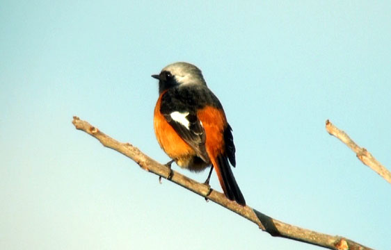 この鳥にも、吉川で出会いました。オレンジ、白、黒、グレーがおしゃれ。