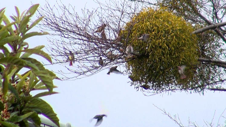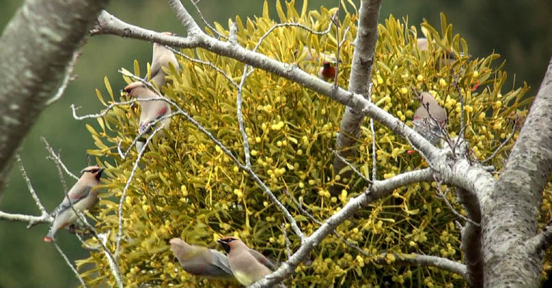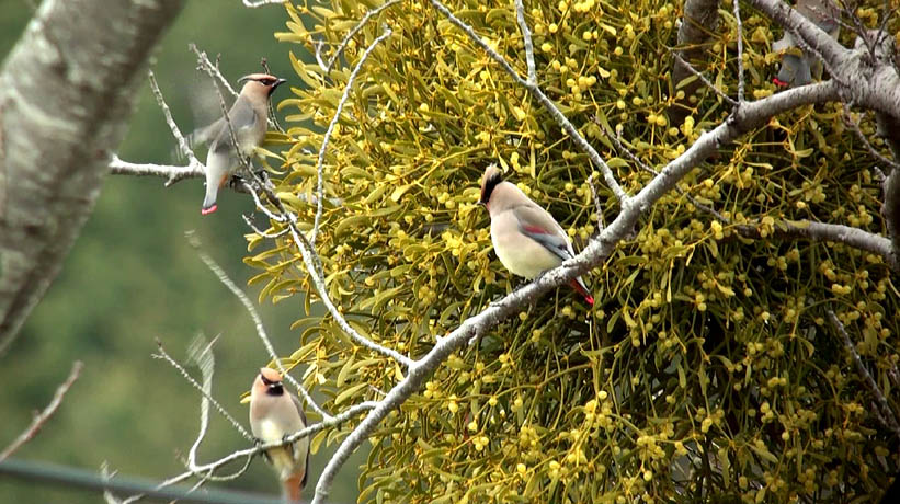 桜並木のヤドリギも、ヒレンジャクのお食事処。今年は姿を見せました。