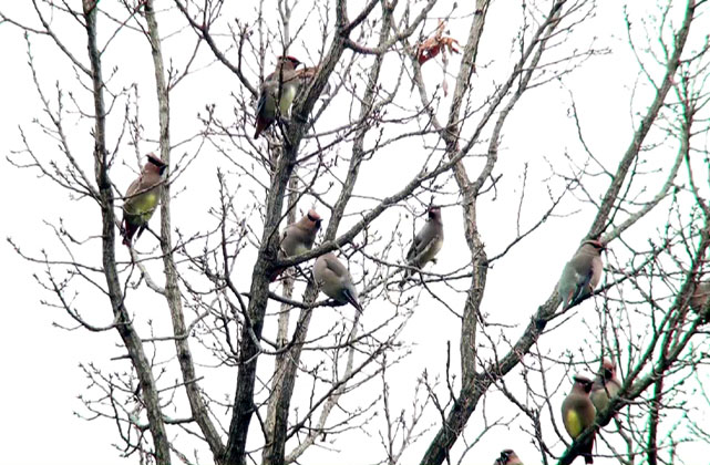 キレンジャクが少なくとも1羽混群していることを、1月29日に確認 (写真の左上)。