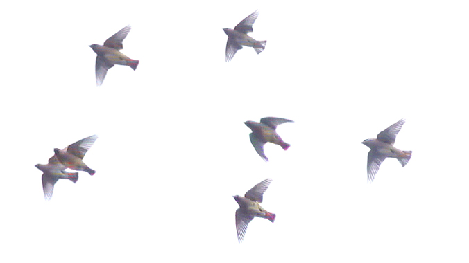 ヒレンジャクが110羽以上集合するなかで、見つけるのに苦労しました。