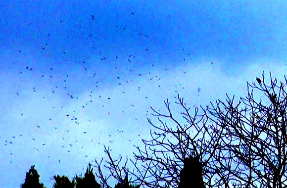 空を飛翔した時にには、約200羽が一群となっていましたが、その直後地面に降りた群れは