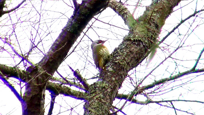 妙見山の頂上でよく出会えるアオゲラですが、このアオゲラとは妙見山の裾野での出会いでした。