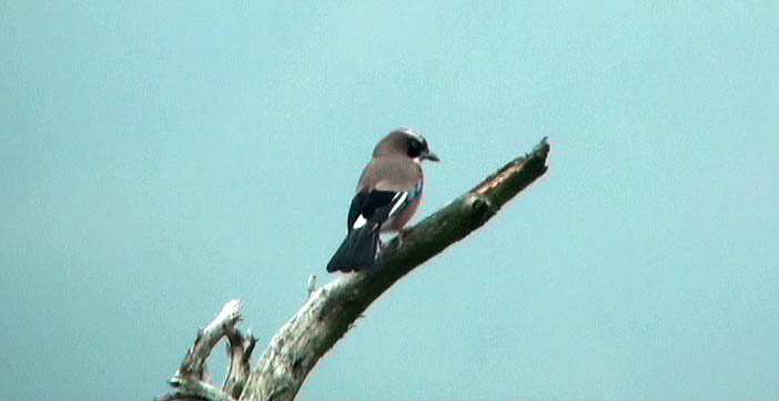 見えました。双眼鏡でもよく見えないので、超望遠鏡でチェック。久々のカケスでした