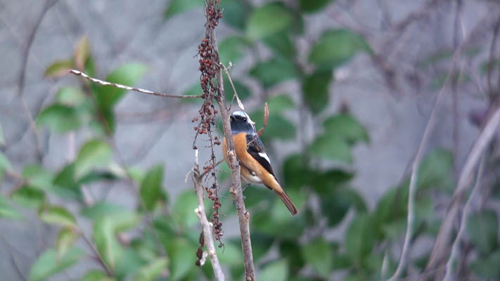 「ピ、ピ、ピ」の高い声が聞こえます。“紋付”を着たジョウビタキが赤い実のそばにいました。これはヌルデでしょうか?