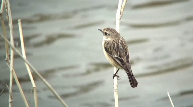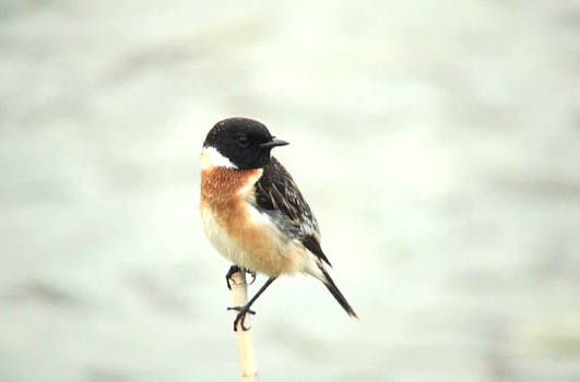 武庫川で出会ったノビタキです。オスはすでに夏色におめかし。さかんにホーキングを繰り返していました。