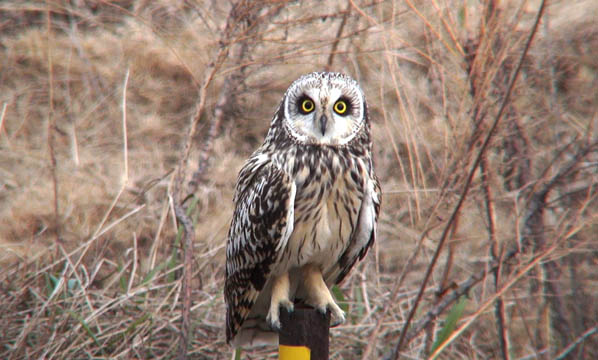 冬鳥のコミミズクが、淀川河川敷で過ごしています。4羽ほどが見られました。