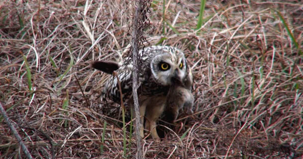 地上1m〜2mくらいをヒラヒラ、フワフワと飛び、ノネズミを捕えました。