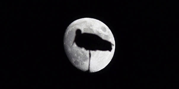 背景に、鉄塔の先端で夜を明かす準備をするなごみちゃん。満月まであと2日の十三夜でした。