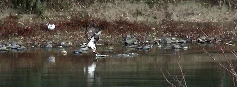 なかでも、ミサゴとの遭遇は特別!まず、対岸で食事中の姿をじっくり観察。