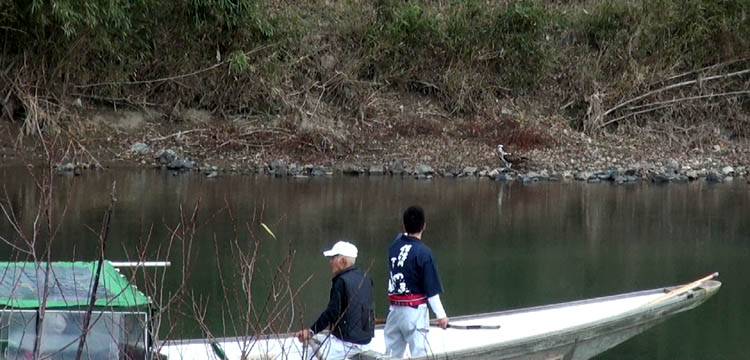 写真:“保津川下り”の船頭さんは、お客に「ミサゴですよ。」と説明。船はミサゴから距離をとって