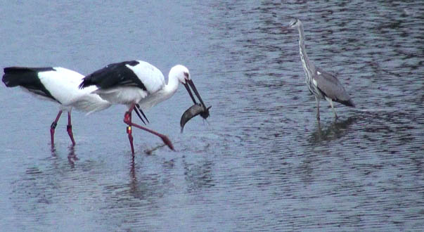寒い強風の中、何度も何度も連続して水面を啄ばみます。小さな魚、そして大きな魚もゲットしていました。