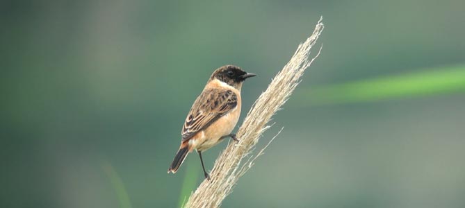河原には、ノビタキも居ました。メスはクローズアップで嘴付け根のヒゲ(whiskers)が見えています。