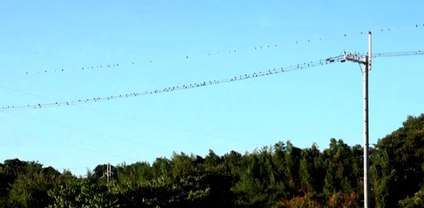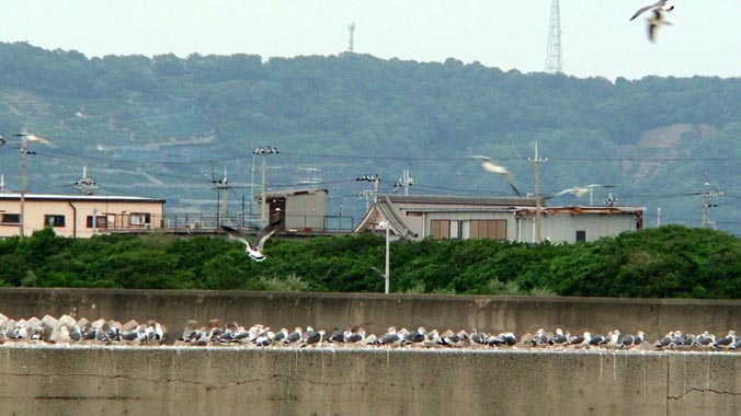 有田川河口の少し上流に居ることもありますが、夕刻は海辺の防波堤に整列しています。