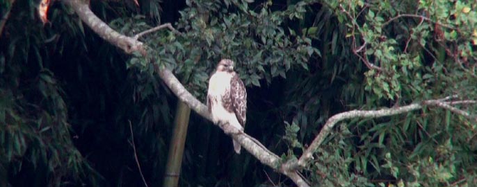 獲物が捕れず、次は林へと向かい、太い枝に場所を替えました。