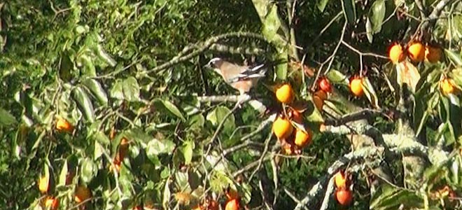 すぐそばで、このカケスも甘く熟した柿を選んでは、啄ばんでいました。