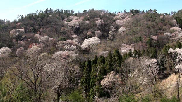 | さくら、さくら・・・毎年ここで大勢の人が車やバイクを止め、お花見をします。 西側の山一面に“いろいろな桜”が、それぞれの個性を出し合いながら春のメロディを 奏でています。 |