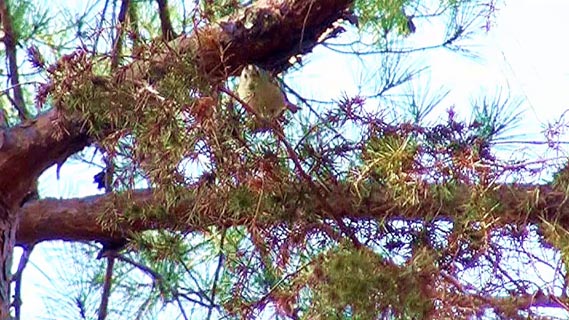 | とても小さい鳥の群れが離れた木々の森から飛び出してきました! なかなか出合えないキクイタダキでした。すばやく動き、ホバリングも。 |