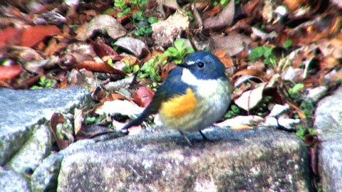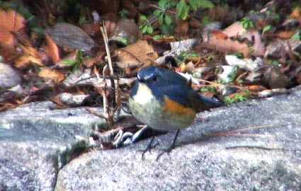 | ルリビタキは冬鳥ですが、冬の間会うことはまれでした。それを補うかのように春先に登場してくれました。 青い背中を、わき腹オレンジが引き立てます。 |