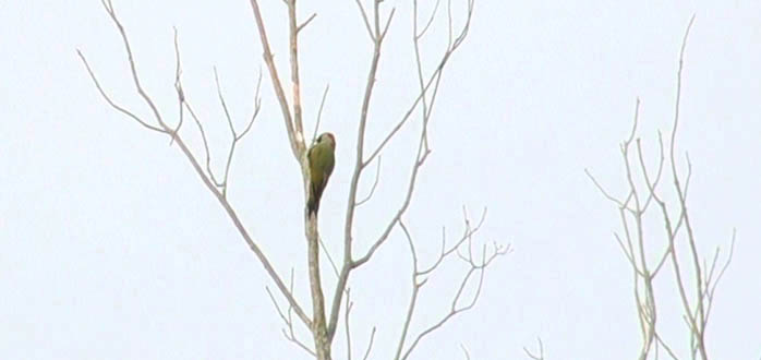 | これも同日の散歩で、遭遇できたアオゲラです。「ヒュー、ヒュー」と囀りを聞かせてくれました。”早春”というプレゼントでした。 |