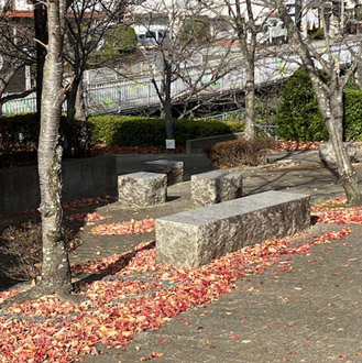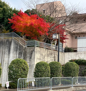 左から、ユーベルホールの東側にある桜の紅葉、2・3番目は西公民館への遊歩道の紅葉⇒この季節の