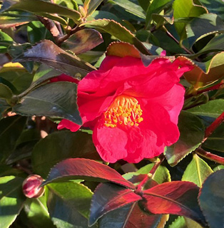 山茶花はいくつも咲き、つぼみもたくさんついています。