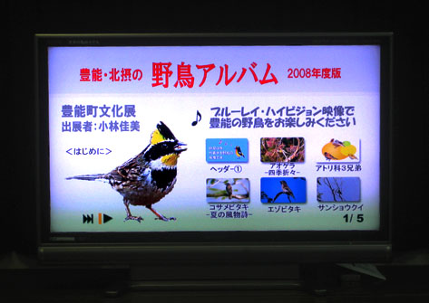 ブルーレイ(.BDMV) ハイビジョンディスクを作製し、上映は42インチ、液晶フルスペック・ハイビジョン・ディスプレイを使用。