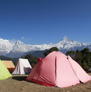 (アンナプルナ南峰が覆いかぶさるようだ!) |
