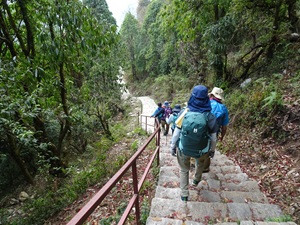 | 途中からバスにのって今宵の宿、アンナプルナ ビュー サランコットへ。 アンナプルナ・ビュー・ホテルというからには、アンナプルナの最高の展望台のはずだが、生憎、展望は利かなかった。 ホテルの庭を散策する。真っ赤なシャクナゲが凄い。日本ではこんな真紅なシャクナゲは見たことがない。 |
