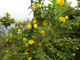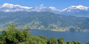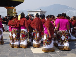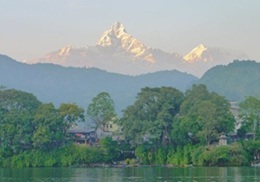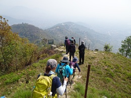 今朝もモルゲンロートのアンナプルナを見ることは出来なかった。朝日は昇ったのだが、雲とモヤで展望が利かなかった。 今日はプンディコットという丘に建つシバ神像と、日本山妙法寺へハイキングである。 |