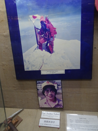 急いでバスに乗り、次の目的地である、国際山岳博物館へ。 博物館にはエベレストへ世界で初めて女性が登頂した、田部井淳子さんの資料が展示されていた。写真やピッケル、アイゼン、ヤッケ等々。 今や遺品になってしまい心が痛む。