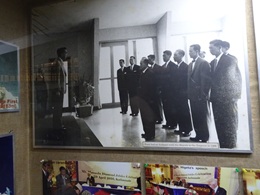 その隣に、マナスル初登頂の日本隊の資料があった。昭和天皇から隊員がお言葉を頂いている写真が目を引いた。 さらに装備類が展示されていたが、まるで軍服を見ているようだった。 | ![]() |