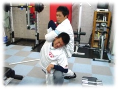 | 高校時代にジムで ストレッチをしている時 |