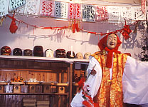 *高千穂の夜神楽 (続き) ところで神聖なる儀式ではあるのだが、(噂では)真夜中になり子供が眠くなってしまった頃に行われる通称「眠気覚まし」の舞いは、かなりキワドイ踊りらしい。仲の良い夫婦の神様がお酒を作る話なのだが、どこまでキワドクするかは踊り手に委ねられているという。毎夜行われる高千穂神社の神楽では、男神が客席に降りてきて女性の観光客に抱きつくと、それを止めに来た女神が亭主を引きずり戻す時に、男性の観光客に抱きついて、男神が慌ててそれを引き離すというパフォーマンスが行われる。最後には仲良く御酒を飲んでめでたしめでたし。 ・・・で、今回本物の夜神楽を見るにあたって、ちょっと気がかりではあった。見てみたいような見たくないような・・・でもこれをとても楽しみにしているおじさん達がいた。 そのおじさん達がいつから近くにいたのかわからないが、日付が変る頃になると、もうすぐ「それ」が始まるんだぞと、どちらからともなく自慢げに語っている。なのに「さあ次だ!」と期待する度はぐらかされ、傍目にも彼らの焦りが見えてきた。 ところで夜神楽では、途中で失礼ではあるが観光客はうつらうつらしてしまう。私も寝たが、おじさん達も寝てしまったらしく、もう「それ」が終わってしまったのではないかと気にしはじめた。やがてユーモラスな類の踊りが始まると、おじさん達はその流れでやっと「それ」が始まるのだと再び期待する。囁き合っている。「もうすぐもうすぐ」 でも寝てしまうはずの子供達はまだまだ元気に踊っていた。 ・・・そしてまたしてもおじさん達の期待ははずされた。 (まだ続く) |