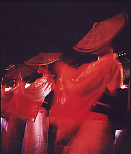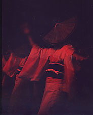 【おわら〜風の盆】 9/1〜3の三日間、富山県八尾では風の盆が行われる。何度もテレビで紹介されたり、ドラマにもなっているので、御存知の方も多いだろう。 一昔前は観光客も少なく、厳かな雰囲気が保たれていたようだが、残念ながら、私が訪れた2002,2003年は既に観光客がごった返し、人気のある町では青年会の若者が、注意を無視してフラッシュをたく観光客を怒鳴りつけたり、観光客同士も押し合いへし合いという、かなりギスギスした空気が漂っている場所もあった。 とはいえ、それでもなお、そこには幽玄な世界がある。