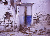 楽しい事ばかり書いてると焼きもちを焼かれそうなので、苦労話をひとつ。 貧乏人の私は島から島へフェリーで渡るのだが、このフェリーにストはつきものだ。サントリーニでも、パロスでもストにあった。フェリー会社はいくつもあるのだが、まず一斉ストに入り、それから少しづつ解除する会社がでてくる。ところが、総合情報というのが入手できないのだ。それぞれの会社は自分の所のことしか知らないし、宿だって、わざわざストの情報は調べない。宿にしたらストで入港してくる客が来ない以上、今いる客にいてほしいのだ。 しかも旅行代理店とかフェリー会社のオフィスは港近くにしかないから、早く出発したければ、わざわざ港まで行って、自力で調べまわるしかない。 日本の店なら、ここで「ご迷惑をおかけしますが」とあやまるだろう。 ギリシャはあやまらない。謝るどころか、「私は知らない」「私には関係ない」「給料を上げない会社が悪いんだ」と開き直る。ストで困ってる観光客で混雑してるから、イライラするのはわかるけど、もうちょっと取り繕えよー。 ストに限らず、宿でも代理店でも店でもどこででも、ギリシャで最後に出てくる言葉は「ノープロブレム」 「大丈夫って、あんた、私の事情をしってるの?」・・・知らんくせにめんどくさいからって、その一言で済ますなー・・・っと こっちが逆キレしそうになったこともありました。 ねっ?けっこう苦労もしてるでしょ? @レストランの表にはタコがぶら下がってる所が多い。干し蛸にするのか、飾りなのか・・・ A塗りかけの青いペンキが印象的な扉だが、落ち葉が積もっているところをみると、ずっと使われていない扉のようだ。 |