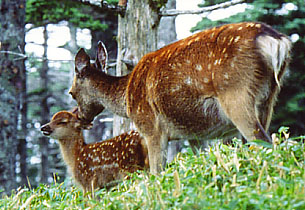 小鹿のバンビ。奈良大台ケ原では春から夏にかけて小鹿をよく見かける。鹿も見てる分にはかわいいけど、時々悲鳴みたいな声をだす。あれ夜に一人で聞いたら結構怖い・・・昔、夜に山中で聞いて殺人事件かと思い大慌てで逃げた事がある。