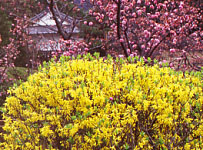 小野小町の住居跡といわれる随心院の紅梅は遅咲きで三月末見頃となる。