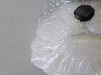 せっかくのかわいい長いまつげやペロンと出した舌も、 それほど立体的でない細かいものに付けるととんでもない状態になります まつげあり、舌ありのどちらか1つの場合はまだ大丈夫ですが 両方ともありは、絶対にお勧めできません オーブンで焼く為、まつげは細くするとなくなり、 太くするとかわいらしさが消え厚化粧の魔女(?!)のようになります これではシュナちゃんに申し訳なく、納得いかないものになります 出来ましたら両方なしをお勧めします |