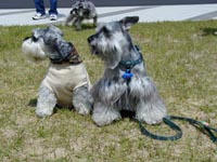 | 暑い、暑い・・・日陰でちょっと休憩〜! 今回は名札付けてるんだわん! |