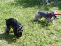 | 「りんくう鵜飼師きみさん」によるシュナ3犬遣い♪ ソルト&ペッパー色の3犬もそれぞれのカラー・・・ ソルトが多い(?!)ちえさん(あさとさん改め)ちのキャリーちゃん、 ペッパーが多い(?!)きみさんちのマックス君、 真ん中カラーのティキ・・・ |